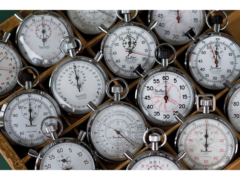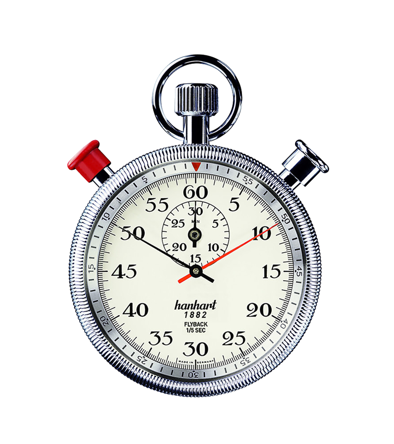 きっかけは、その前年に参加したある陸上競技大会でした。大会運営側は、計時のために必要な4本のストップウォッチを用意するのにも苦労し、集められた時計は品質にもばらつきがありました。当時、ストップウォッチはほとんどがスイス製で、高価なうえに製造数も限られており、一般にはなかなか手に入らないものでした。この現状に強い疑問を抱いたヴィルヘルムは、自分たちで作ることを決意します。彼は腕利きの時計職人とともに、設計と製造に取りかかり、ついに手頃な価格で入手できる初の機械式ストップウォッチを完成させます。この一歩が、HANHARTをストップウォッチ分野のパイオニアへと導く、まさに「スタートボタンを押す」瞬間となったのです。