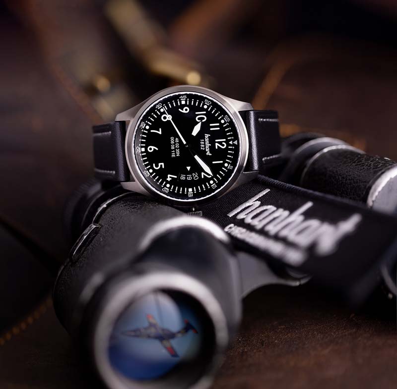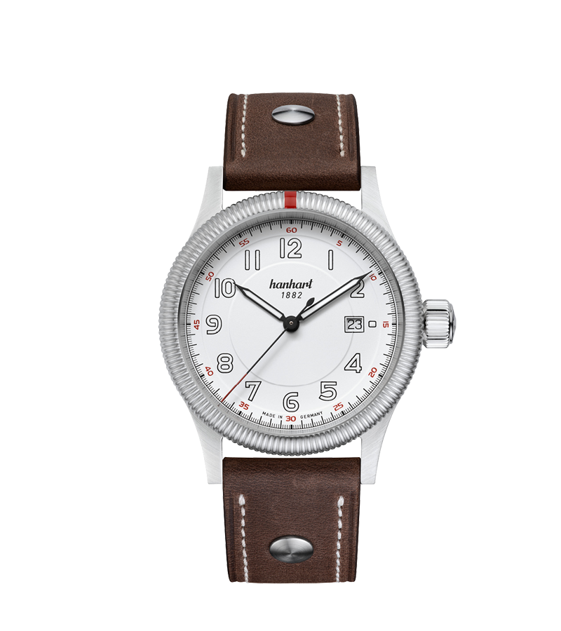 1990年代、伝統的な時計製造技術への関心が再び高まるなか、HANHARTは自らの原点とも言える名作に立ち返ります。1997年8月、黒い森の町フルトヴァンゲンで開催されたアンティークフェアにて、1939年製の伝説的なパイロットクロノグラフが、忠実なレプリカとして発表されました。復刻は、製造責任者マンフレッド・シュヴェールの指揮のもと実現。当時のHANHARTロゴ、非対称に配置されたプッシャー、ケースや文字盤のディテールに至るまで、すべてがオリジナルに倣い、細部にわたって丹念に再現されました。また同年に、管理部門と製造部門がグーテンバッハの拠点に統合されました。