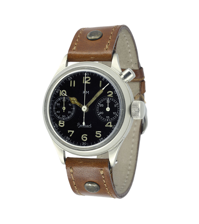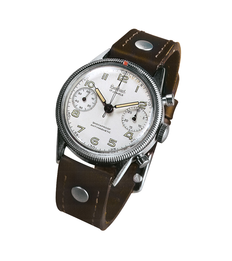 1940年、ツープッシュ式クロノグラフ「キャリバー41」の製造を開始。同時代に、パイロットウォッチがHANHARTの主力製品となり、海軍の砲兵向けに懐中型クロノグラフの製造も手がけるようになりました。